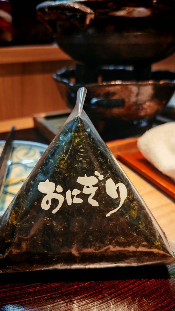 這裡曰人情屋台,果然也真的頗有人情味。老闆一直招呼週到,只是以我日語連N5也不到的程度,不能盛情回應。我們那天沒吃午飯,訂了430的座位,吃個早飯,到差不多530就已滿座。旁邊兩組原本不認識的客人,在老闆拉動下間中也聊起來。坐在我們旁邊是一對從廣島來的客人,知道我們由自香港也說個不停,談到香港在日本人之間頗受歡迎的。那個五穀飯雖然好吃,但確實吃不下,老闆幫忙做成飯團讓你帶走,這應該就是屋台的氣氛吧!