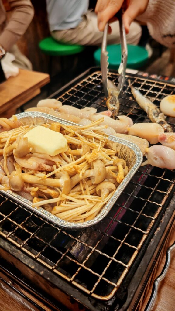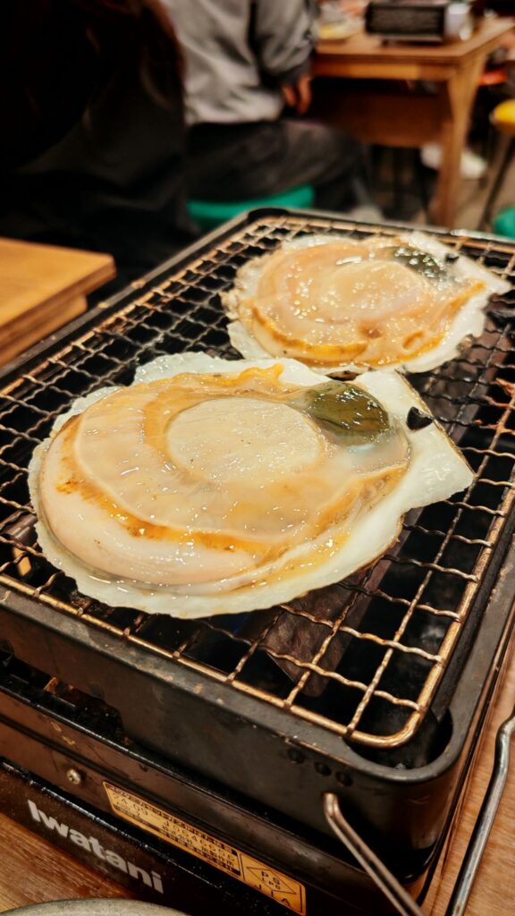 另一頓晚飯是我們從長島Day trip回來後,已經頗晚,沒怎麼東找西找下就在酒店外的「磯丸水產」坐下。那是酒場式的水產店,吃的固然海鮮。店裡每桌都提供小炭爐,供客人自己燒烤海鮮。有敏感體質的我非海鮮控,所以點的不算多,當中以貝柱最令人驚豔,那個大小尺寸在香港是不容易見到的。