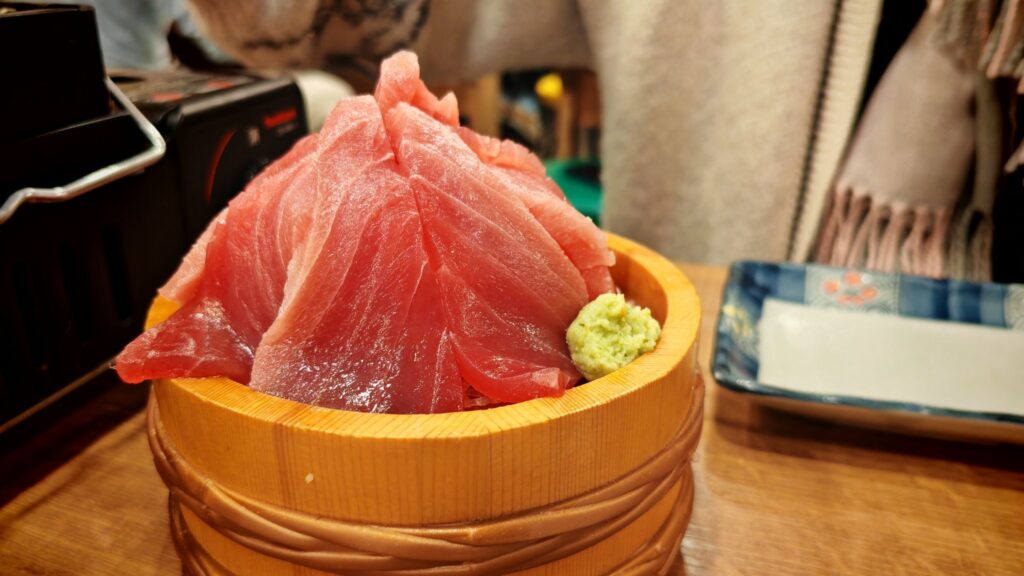 人情屋台內設有四五家迷你店,確實是屋台式的那種,小廚房前只有一張小小的吧台,能容納六至七人,你可以想像是food court的概念但裡面只是幾家小小的屋台。我們到訪是店是「柳橋惣菜 ふく田」,在Tabelog已點了和牛蕃茄火鍋。雖然是大牌檔的格局,但套餐的各小碟仍然是有序先後端上,先是沙律、再來刺身、然後漬物味噌魚和甜蛋,接著就是主菜和牛鍋。坦白說,和牛沒有那種誇張的鬆化感,但肉香也是上佳,蕃茄湯也不是香港茶記的濃茄湯,而是清湯加新鮮蕃茄煮成,比較自然。但我最欣賞卻是那個五穀米飯,居然並非用電飯煲,而是用小鍋煮成,更顯得顆粒分明。