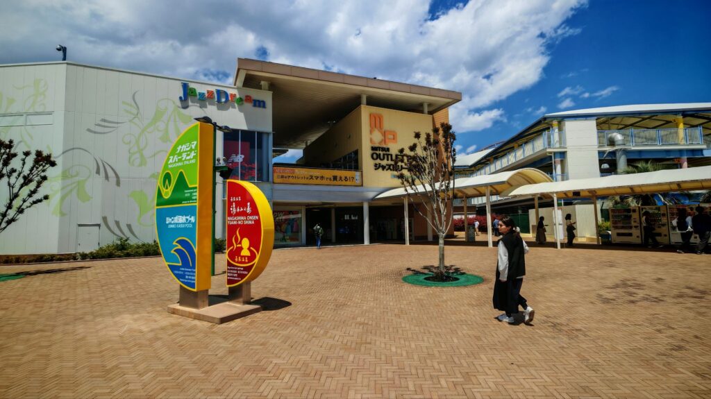 長島位在名古屋巿西南的三重縣桑名巿,面向伊勢灣。本來就是個度假村,以溫泉樂園Spa Land聞名,設有各種機動遊戲和哥爾夫球場等等。之前說到希望在長島住一晚溫泉旅館,然而旅館沒空房我們轉往知多半島。不過我們也想到Outlet逛一下,而最近名古屋的Outlet就在長島,所以在長島耗了一天。